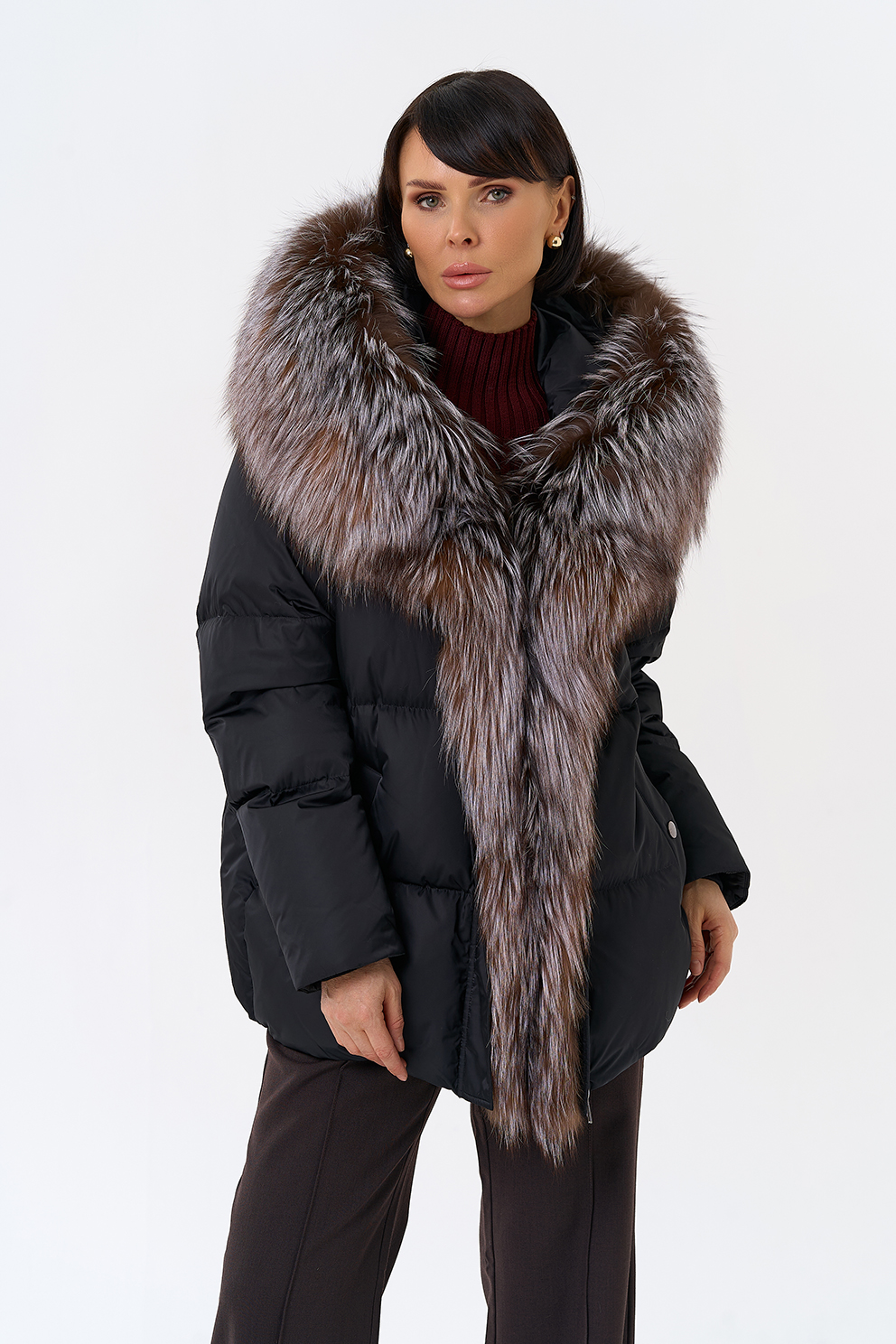 Крой воротника - капюшон, отделка блюфрост