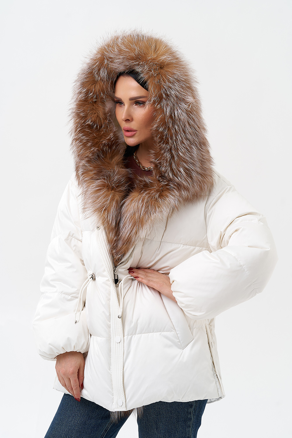 Крой воротника - капюшон, отделка лиса